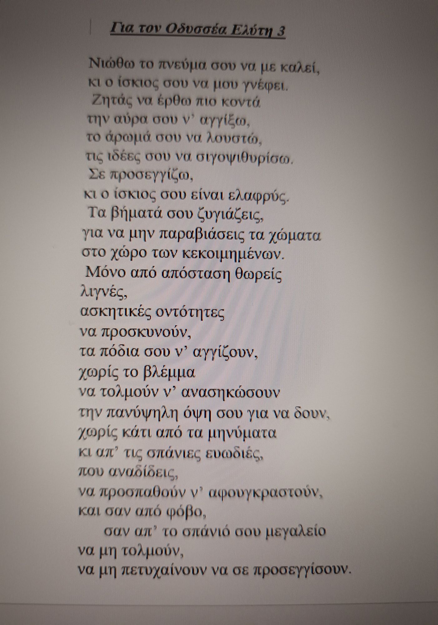 Τα ποιήματα Ένα παιδί, Ζωή, Για τον Οδυσσέα Ελύτη 3 και για τον Για τον Οδυσσέα Ελύτη 1 που έγιναν απαγγελία στην εκπομπή θα τα βρείτε στην κατηγορία Λογοτεχνικά > Ποίηση